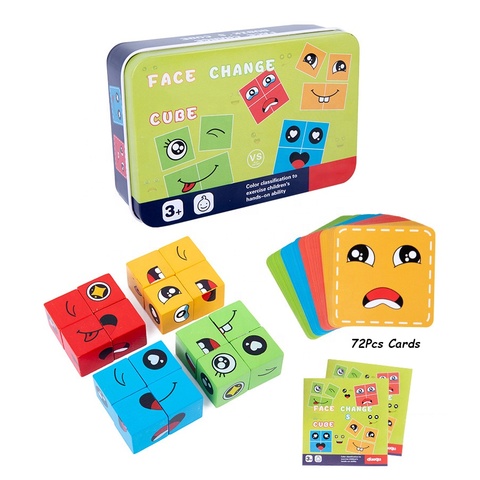 חשיבה לוגית הורה-ילד 2-4 שחקנים ילדי ביטוי בלוקים פאזל צעצועי מונטסורי עץ פנים שינוי קוביית בלוקים